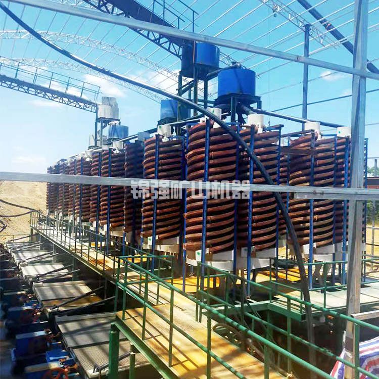 螺旋溜槽在細(xì)粒鐵礦分選中的應(yīng)用螺旋溜槽中的徑向環(huán)流對礦粒群按比重分起著主要作用。離心螺旋溜槽是為了調(diào)節(jié)渦流強度,實現(xiàn)強化分選而增加離心力場的設(shè)備。將磁場附加到普通溜槽的槽面上,可以得到磁力螺旋溜槽,這樣可以更有效地回收磁性物料。磁螺旋溜槽回收細(xì)粒磁性物料,結(jié)果表明磁螺旋溜槽提高了磁精礦產(chǎn)量,減少了尾礦損失。細(xì)粒級螺旋溜槽的特點是類似地毯的絨面選擇,能有效回收0.037~0.01mm細(xì)粒級金屬礦物,提高螺旋溜槽的處理能力。新型搖床的處理能力和分選效率不斷提高。螺旋溜槽不斷優(yōu)化結(jié)構(gòu)參數(shù),同時疊加磁力、離心力、機械振動力等進(jìn)行強化分選。水力旋流器占地面積小,分級效率高。為了提高分級效率,采用新型耐磨材料,優(yōu)化結(jié)構(gòu)參數(shù),采用復(fù)合力場是旋流器的主要發(fā)展趨勢。離心選礦機采用離心力場,加強分選過程,降低礦物回收粒度下限,逐步實現(xiàn)連續(xù)排礦。